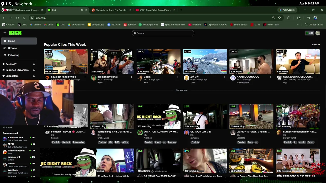 All the "blackassdave" Kick VODs