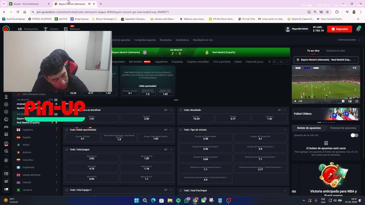 - [cl] ⚽HOY CHAMPIONS EN VIVO⚽ | REACT Y KE PASA CONCHETUMARE😡 | CUOTA 4.4🥵🥵🥵 | !ig !ds !voces (2026-04-07)
