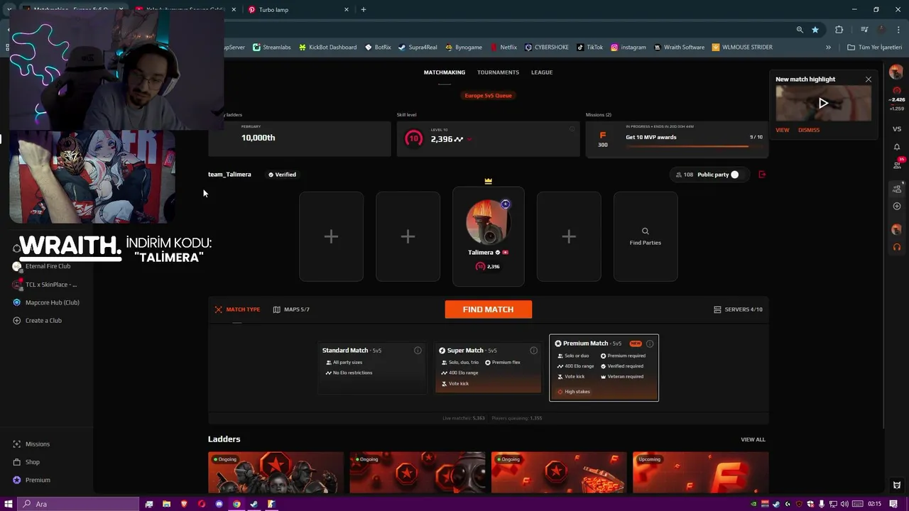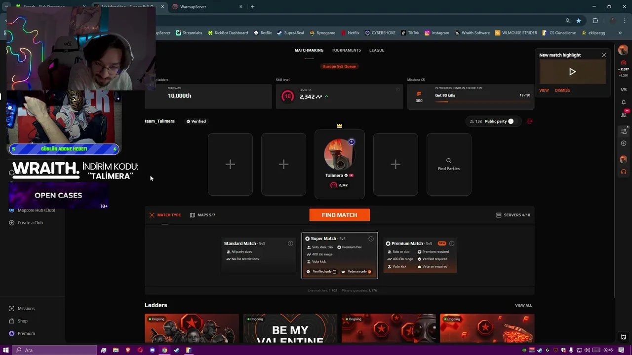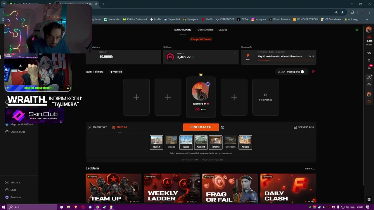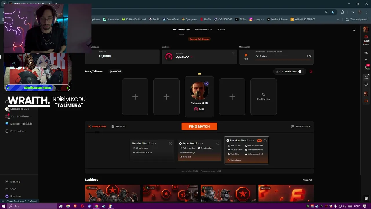 - 🚨 Faceitde Küfür Etmiyorum Gün 1 (yersen) 🚨 - !wraith !skinclub (2026-02-10)