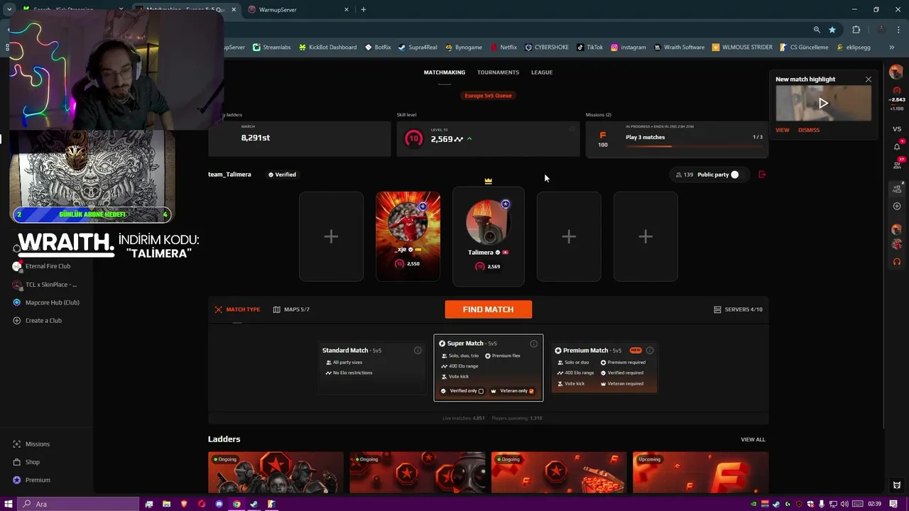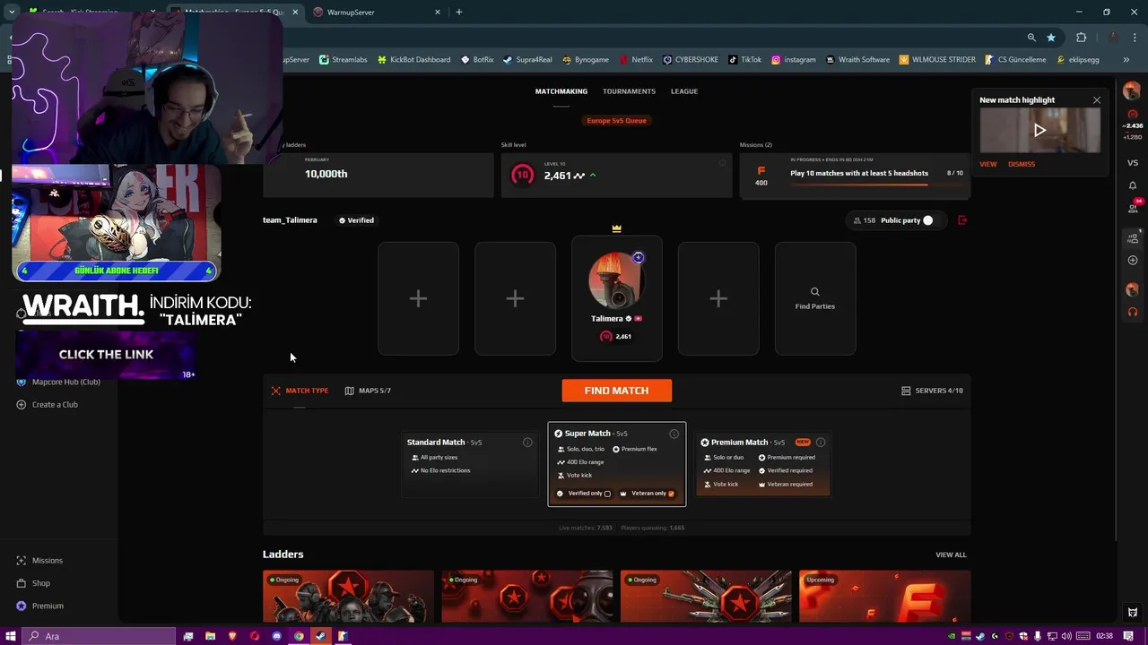 - 🚨 Faceitde Küfür Etmiyorum Gün 1 (yersen) 🚨 - !wraith !skinclub (2026-02-22)
